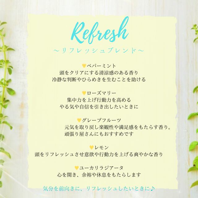 心に安らぎを与えるリラックスブレンドと集中力UPを高めるリフレッシュブレンドの2本セットでの販売です♡